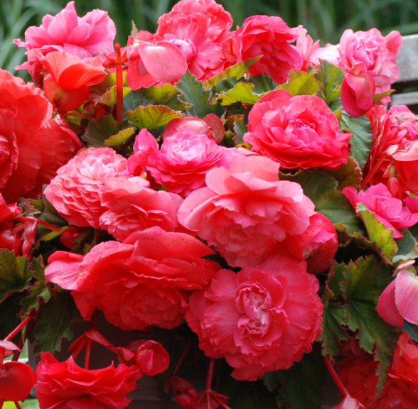Their flowers resemble small roses. Large-flowered begonias are ideal for the garden, balcony or terrace.