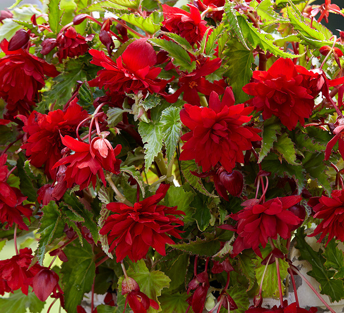 Their flowers resemble small roses. Large-flowered begonias are ideal for the garden, balcony or terrace.