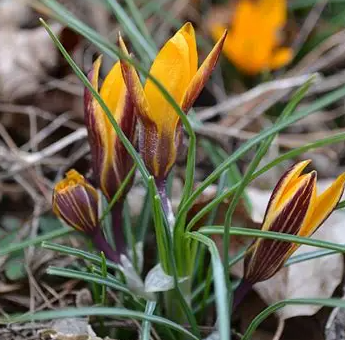 Crocus tubers should be planted from September to November. Plant the bulbs to a depth of about 5-10 cm. The distance between the tubers should be 10–15 cm. They look the most beautiful planted in groups of several, a dozen or even several dozen. Growing in the same place for several years, they form dense clumps. They are planted under trees and shrubs, on the edges of flower beds and in rock gardens. Crocuses can also be grown in containers and boxes.